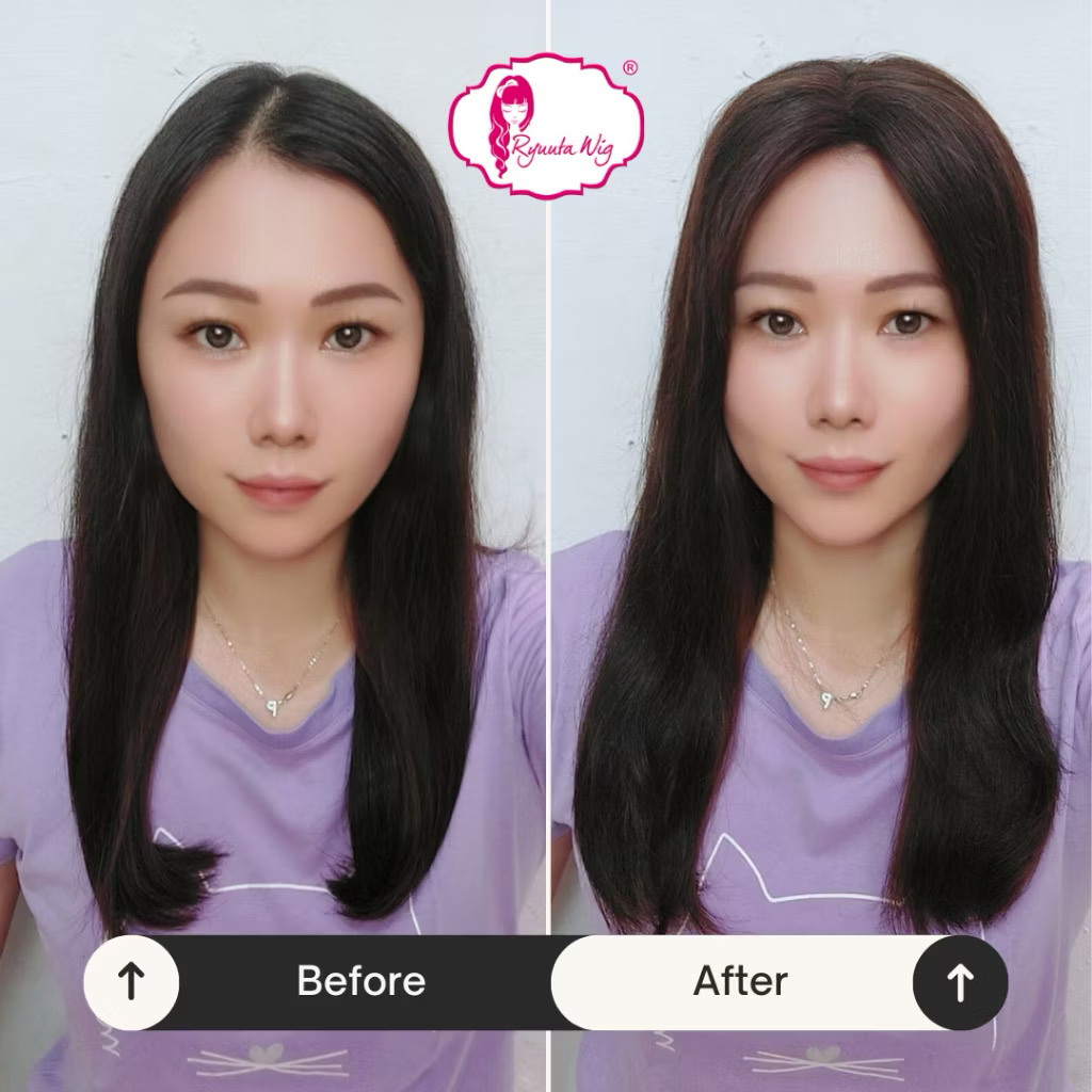 1. Dijepitkan ke rambut asli di sekitar bidang yang ingin ditutupi dengan menggunakan clip/jepit pada bagian base toupee. Bisa dipasang sendiri.